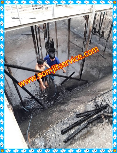 สูบและล้างทำความสะอาดบ่อบำบัดน้ำเสีย