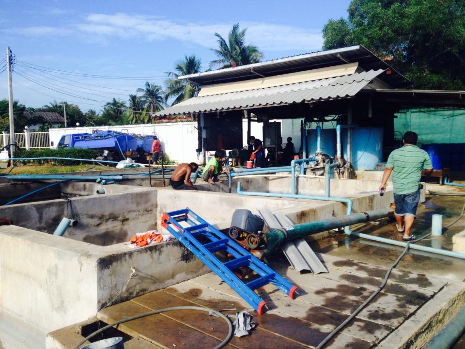 สูบน้ำเสียและล้างทำความสะอาดบ่อบำบัด